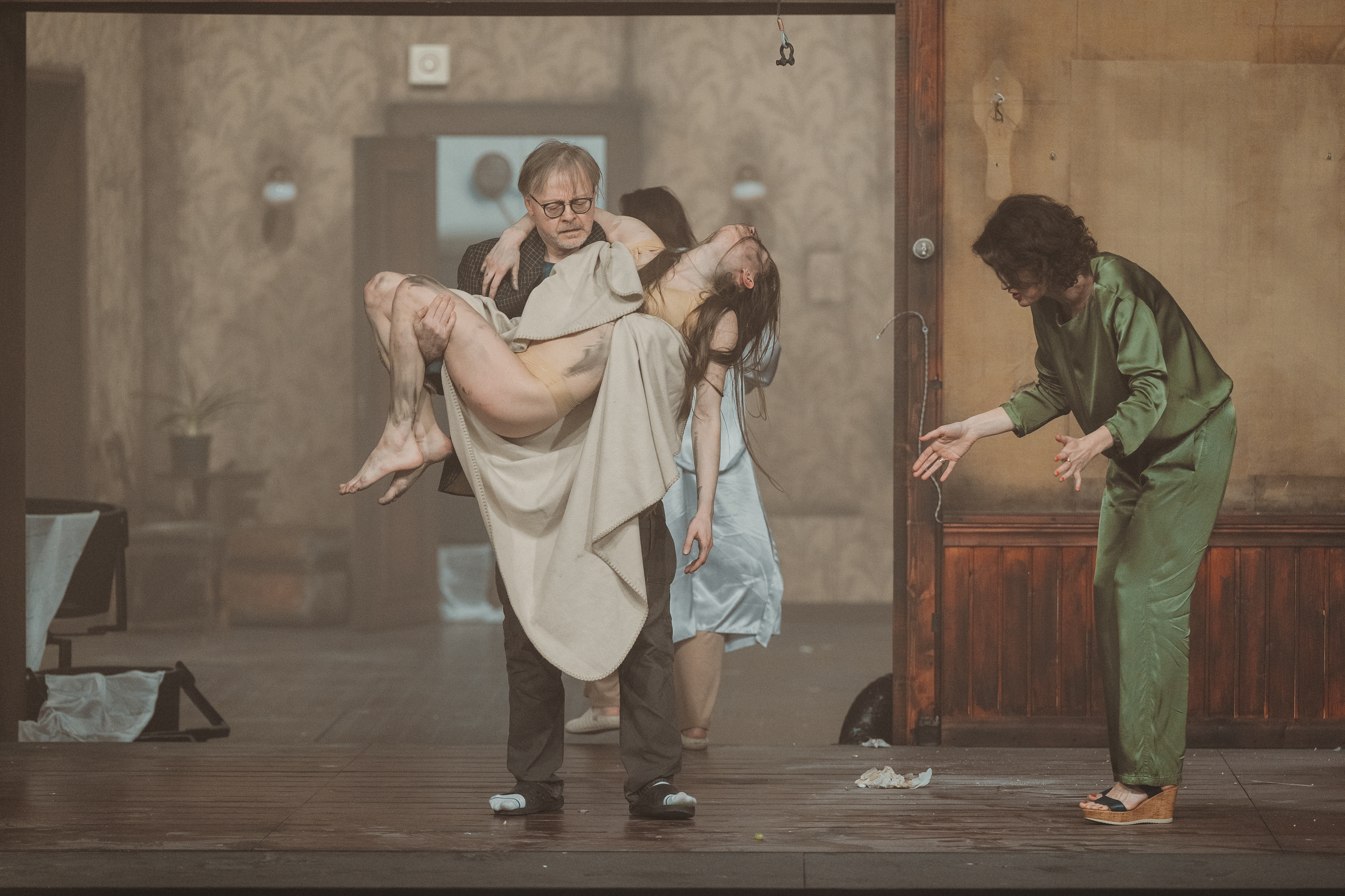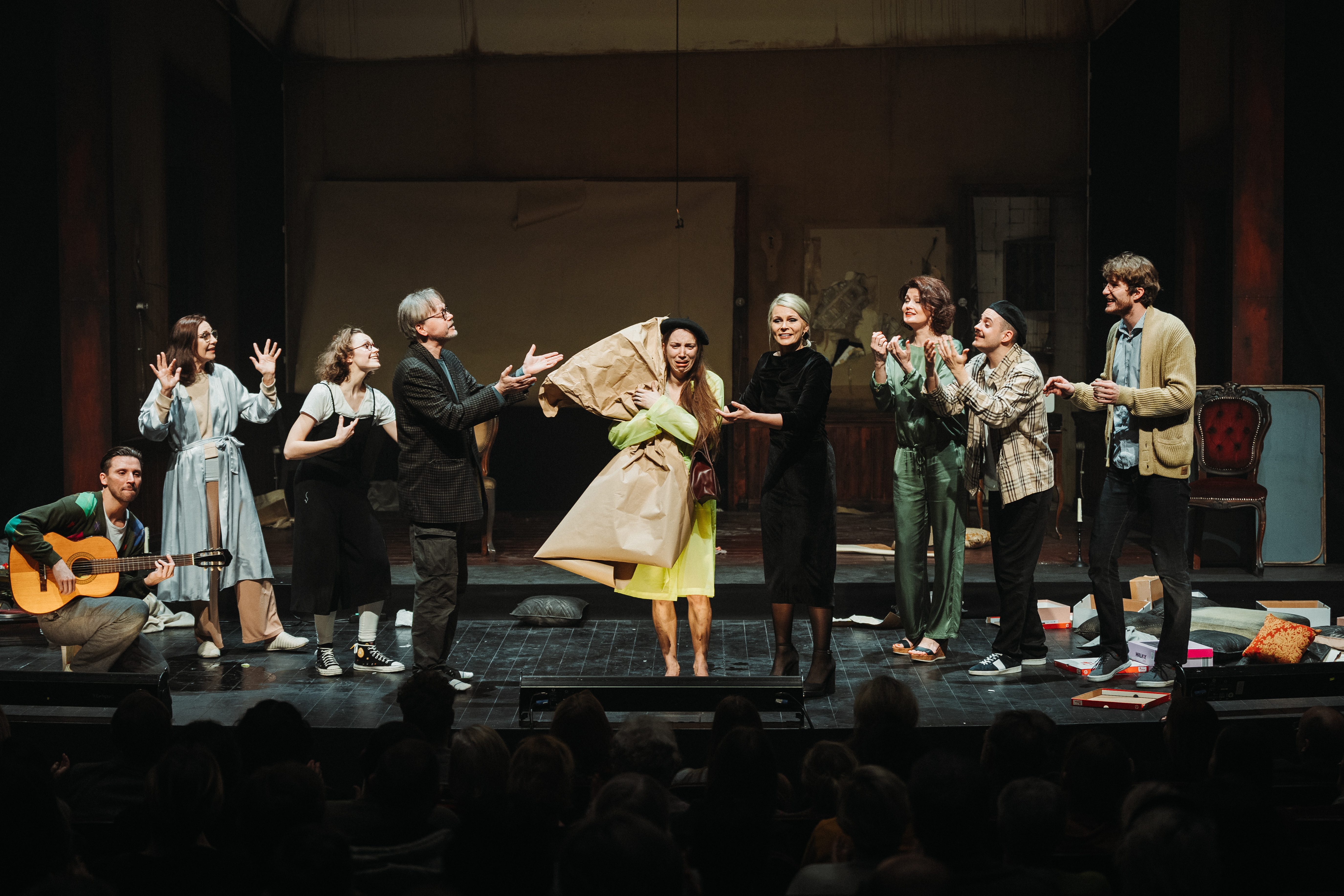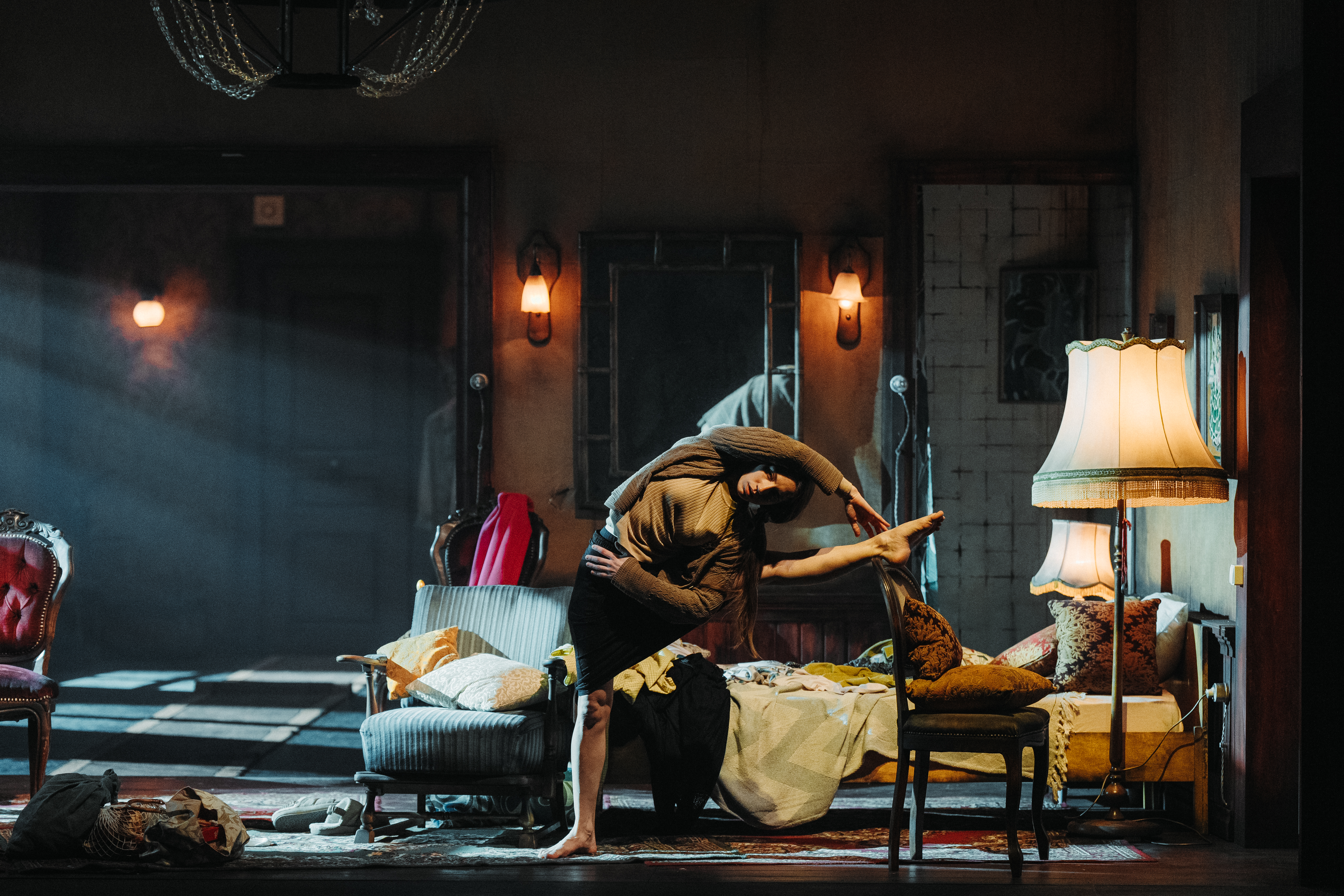 The course of the performance is like a labyrinth – as soon as the viewer ‘settles’ into the content, environment and rhythm of the stage action, everything changes literally in seconds and a different situation begins in a different environment, in a different rhythm.