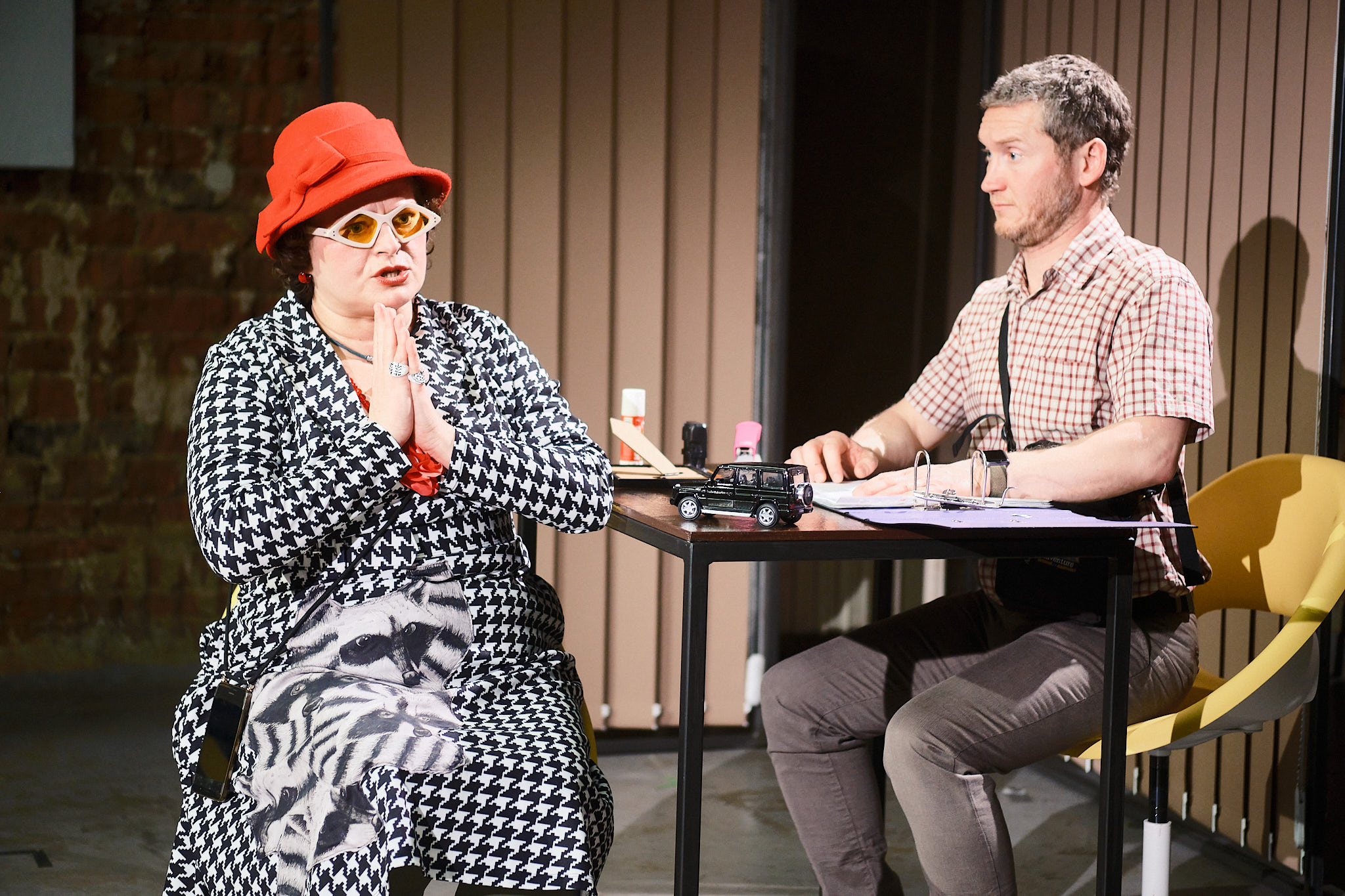JEEPS Only the rich are not ashamed to complain about their poverty. Some people get a jeep as part of a baby kit, others will never save enough to buy one. Fortunately, a new inheritance reform brings hope to all the unfortunates whose family circumstances have left them with nothing. Now, anyone who buys a ticket in the state lottery can inherit. If luck is on their side, that is... A theatrical mockumentary about certain tragic events in a Munich employment office that went unnoticed by the general public because of the Champions League final. A Kafkaesque vision of contemporary society where a middle-class man loses one of the last opportunities to acquire a house – his inheritance. Letí Theatre prepared a stage production of the new comedy by German playwright Nora Abdel-Maksoud, nominated for the Best Drama of 2022 at the Mülheim Theatre Festival, just one year after its world premiere at the Kammerspiele in Munich. The ‘old stars team’ of the Letí Theatre reunites after a long time at the Vila Štvanice Theatre to anger and cheer up the audiences in whatever proportion they like.